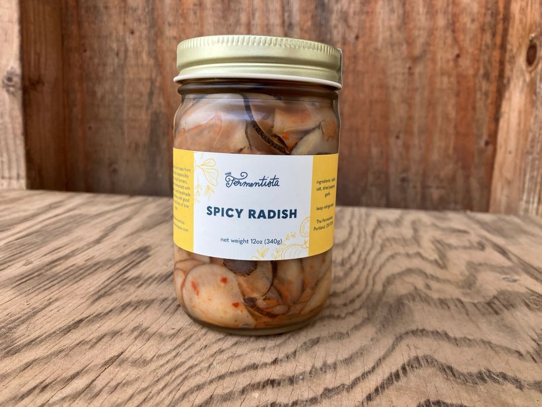 Locally fermented veggies found at your favorite Portland farmers markets. Check out their Instagram here: https://www.instagram.com/thefermentista Contains radishes, salt, dried peppers, garlic.
