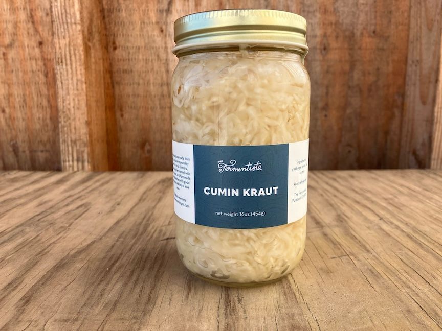 Locally fermented veggies found at your favorite Portland farmers markets. Check out their Instagram here: https://www.instagram.com/thefermentista Contains cabbage, onion, salt, cumin.
