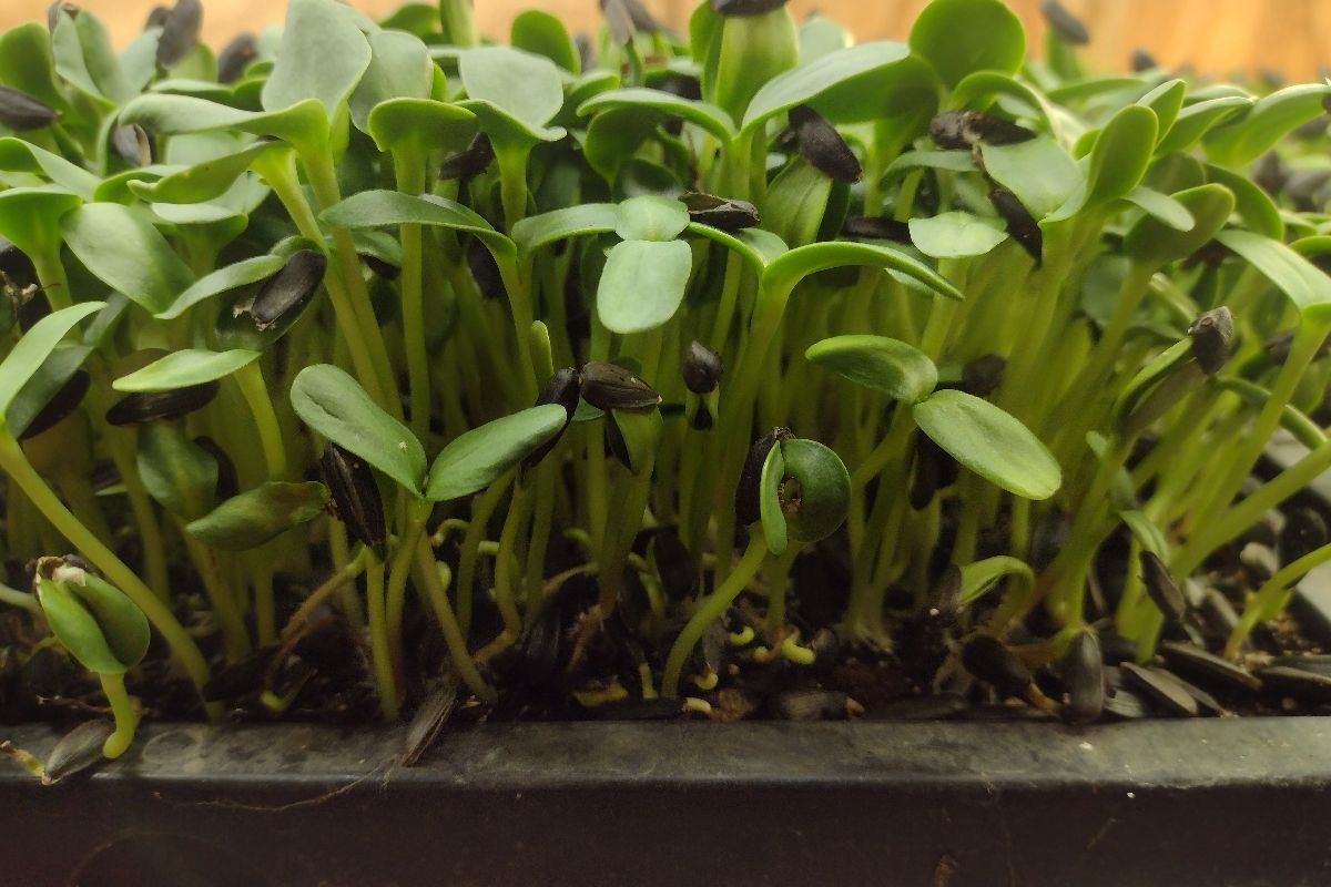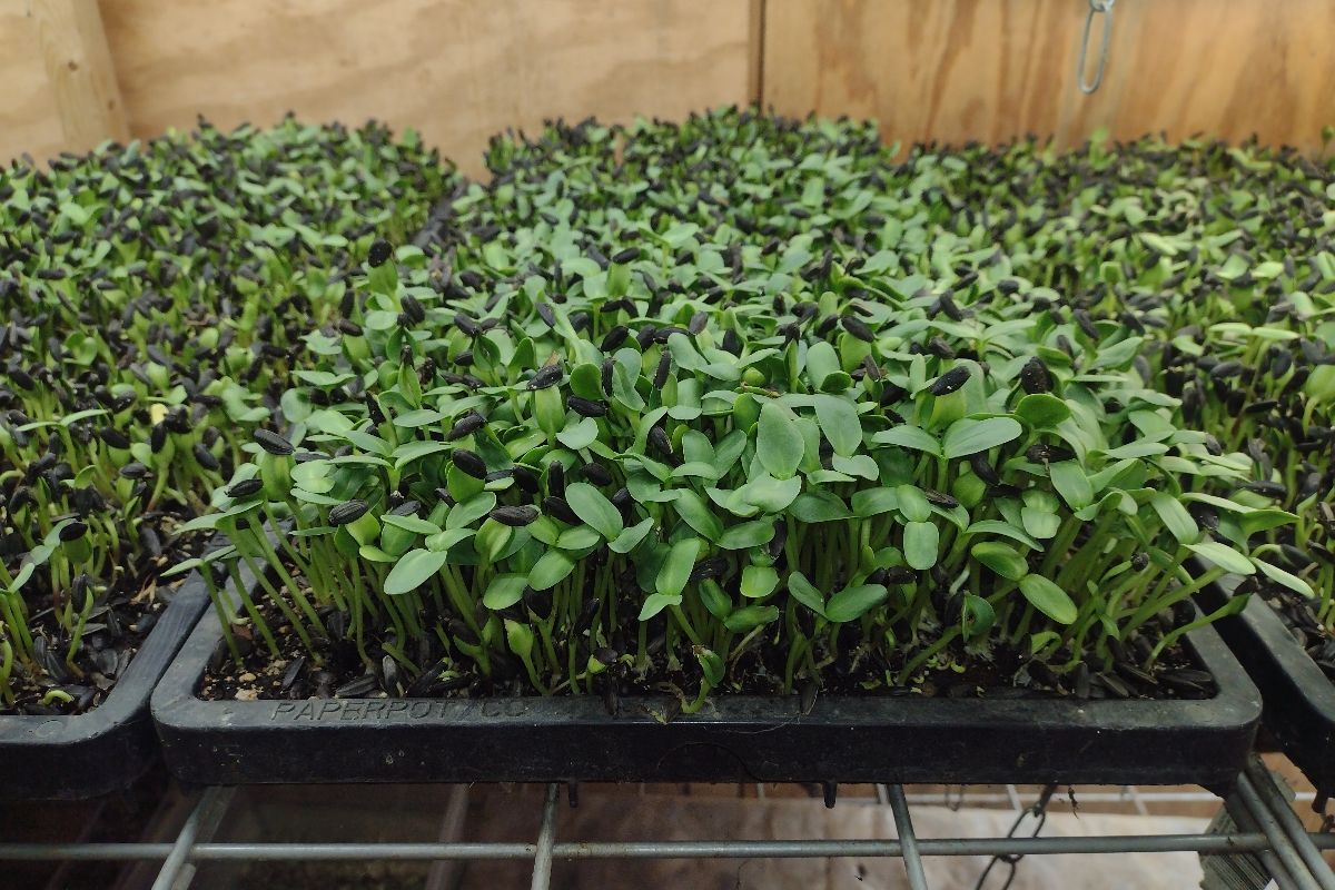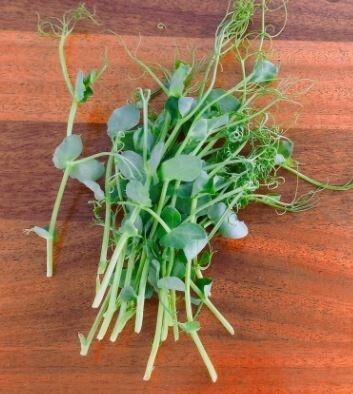 Pea micros are a fantastic way to add a splash of fresh green flavor into you winter diet. Entire stem, leaves, and tendrils are edible, either fresh or as a late addition to stir fries or other dishes. We also love mixing these with our sunflower micros. Organic seed, grown in our regular seeding mix.