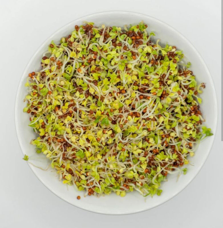 Sprouts from multiple varieties of mustard and radish seeds. This is about as nutritionally dense as it gets! Perfect for extra crunch on salads or in a sandwich. Grown by CSA member Quaye.