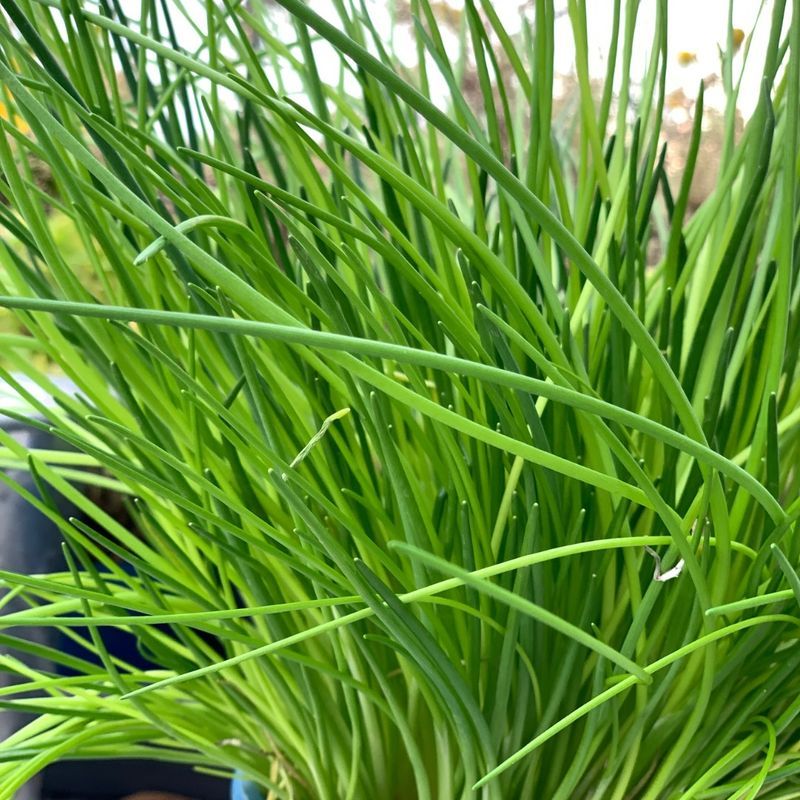 Garlic chives, also known as Chinese chives, are a flat-leafed herb with a mild garlic flavor. Unlike regular chives, they have a more pronounced taste and are commonly used in Asian cuisine. Both the leaves and the white flower buds are edible and can be used in stir-fries, dumplings, soups, and salads. They are rich in vitamins A and C and add a fresh, savory kick to dishes.