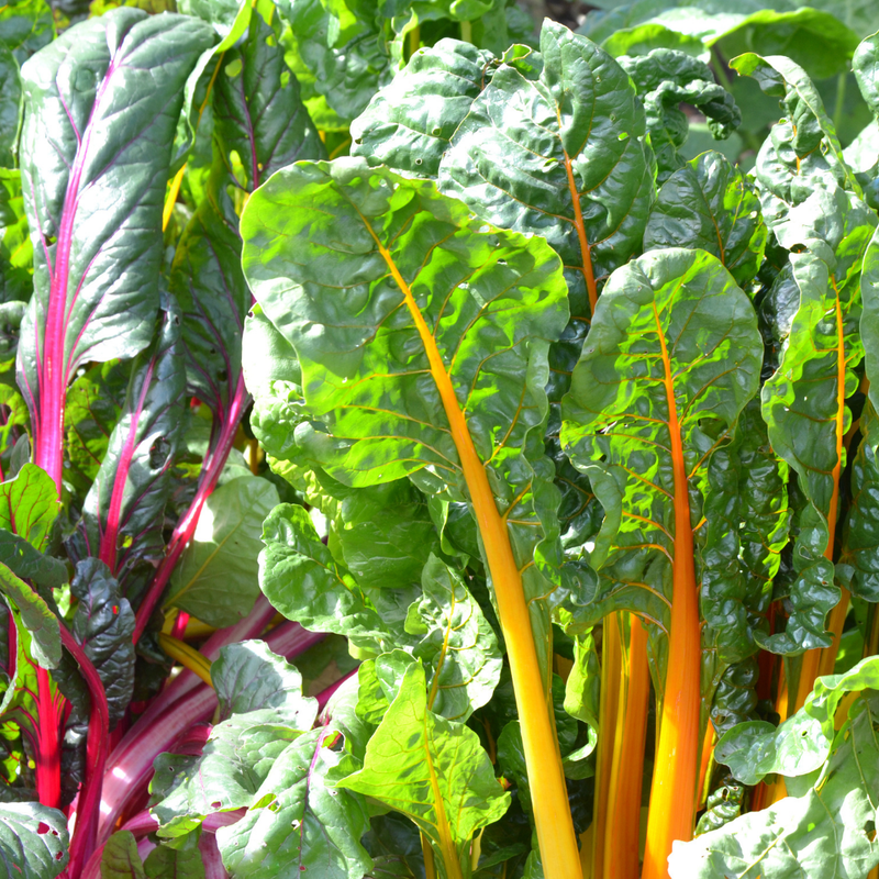 Colorful, tender, fast cooking. Can be used as a sub for spinach in cooked recipes. Large leaves yield more volume per unit than spinach. Stems are quite edible when cooked.