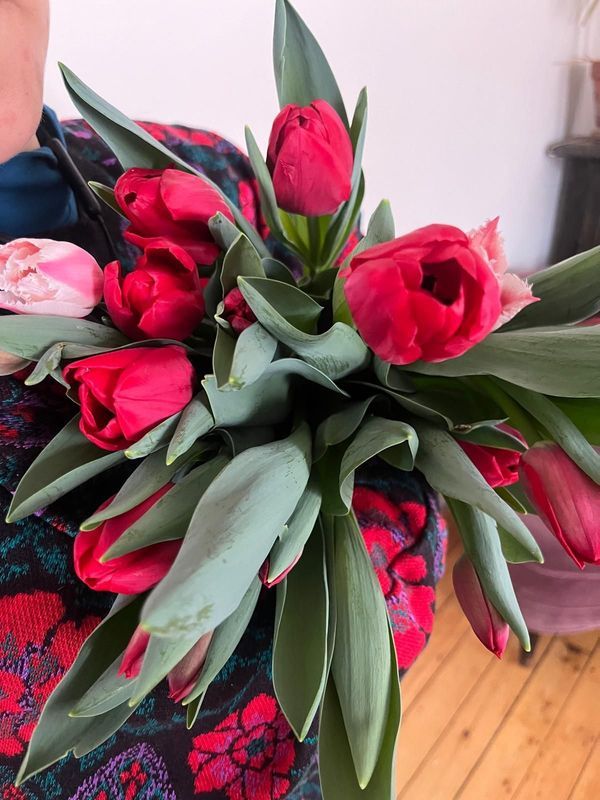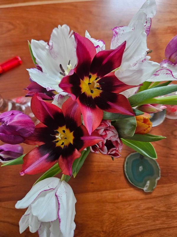 These specialty winter tulips are grown hydroponically in a basement, making them ecologically friendly. Local tulips also boast a vase life of 7-10 days, far outlasting typical grocery store flowers.