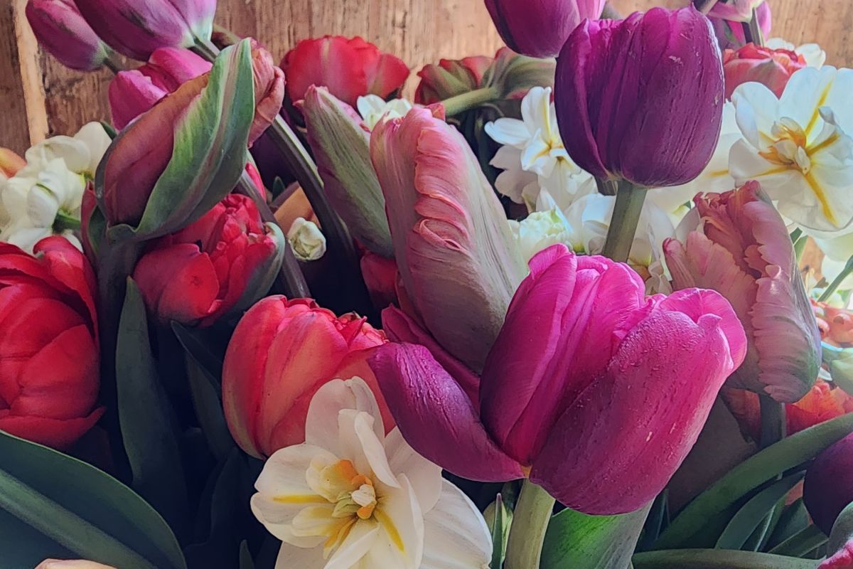 A six week winter tulip bouquet subscription of our specialty, local tulips.