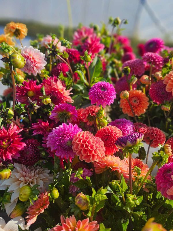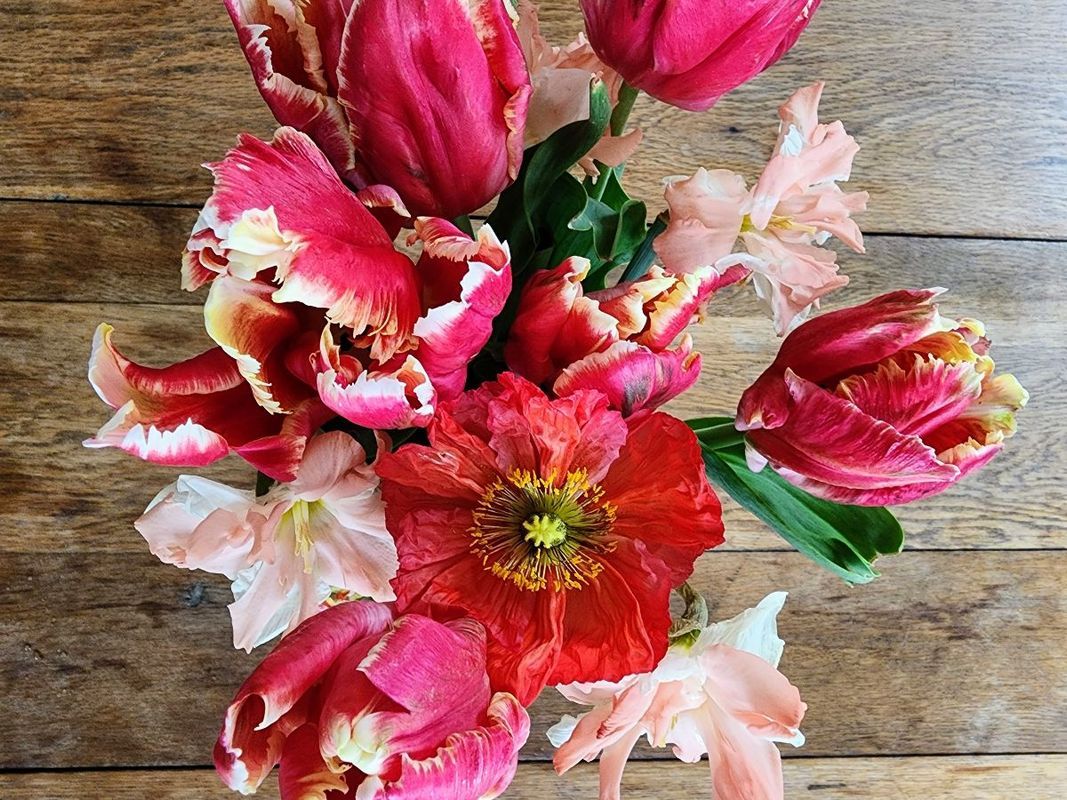 Purchase a full season of local flowers, from spring tulips to fall dahlias, and get a 10 percent discount (more than $60 off buying one month at a time!) Long-lasting blooms that will fill your home with color all season long. Flowers in the spring can include peony tulips, fringed tulips, parrot tulips, long-lasting, ruffled ranunculus, and fragrant, heirloom narcissus. There will be a June flower gap while we wait for summer flowers to come in. Summer will include lisianthus, lilies, sunflowers, zinnias, snapdragons, cosmos, celosia, amaranth, rudbeckia, and more, and then by August, we will add in our beautiful dahlia collection!
