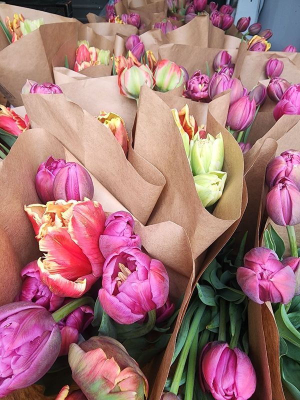 These specialty winter tulips are grown hydroponically in a basement, making them ecologically friendly. Local tulips also boast a vase life of 7-10 days, far outlasting typical grocery store flowers.