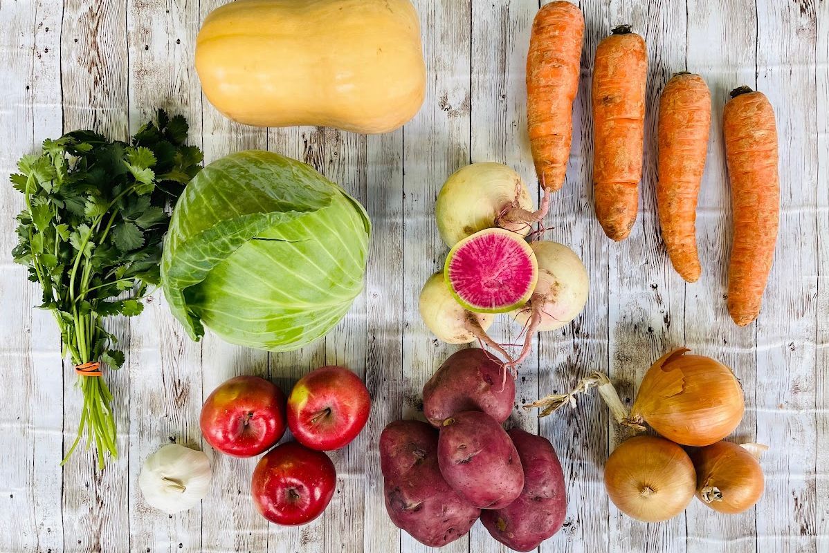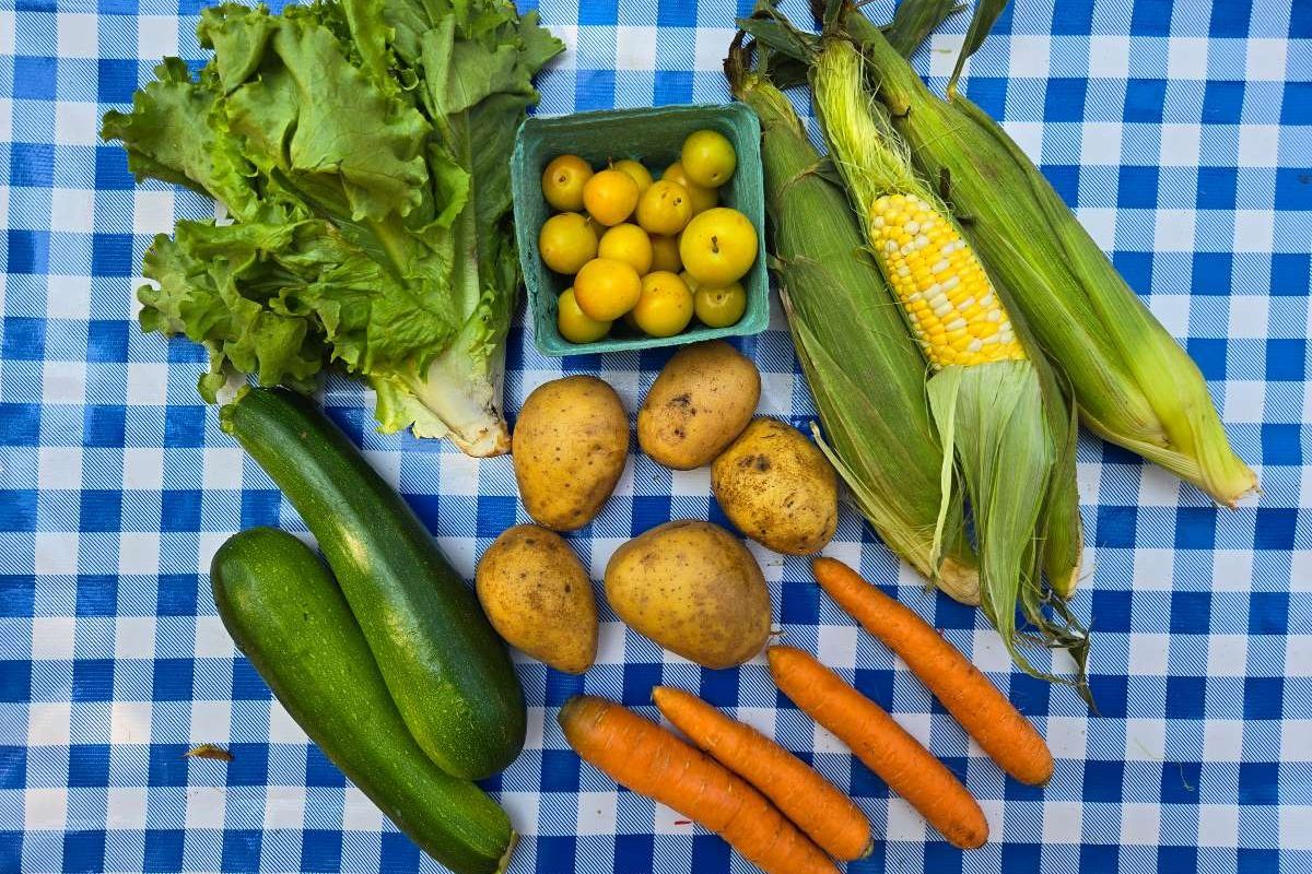 Variety of fresh, local, and seasonal fruits and vegetables - anyone can participate!