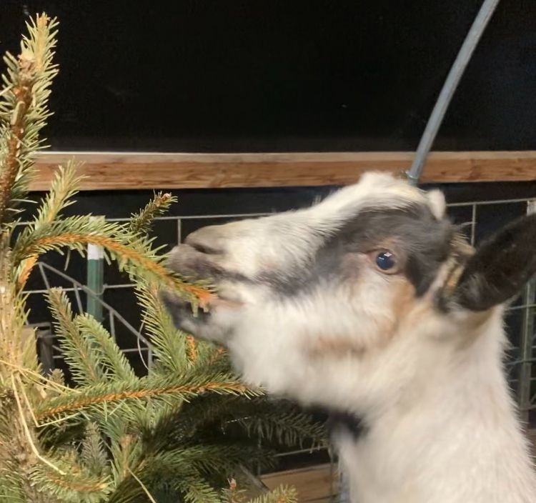 Your pick up fee directly supports the goats. They eat a lot more hay in the winter due to the cold temperatures. The pick up fee helps us cover the cost of the extra hay and the christmas tree is a delicious treat!