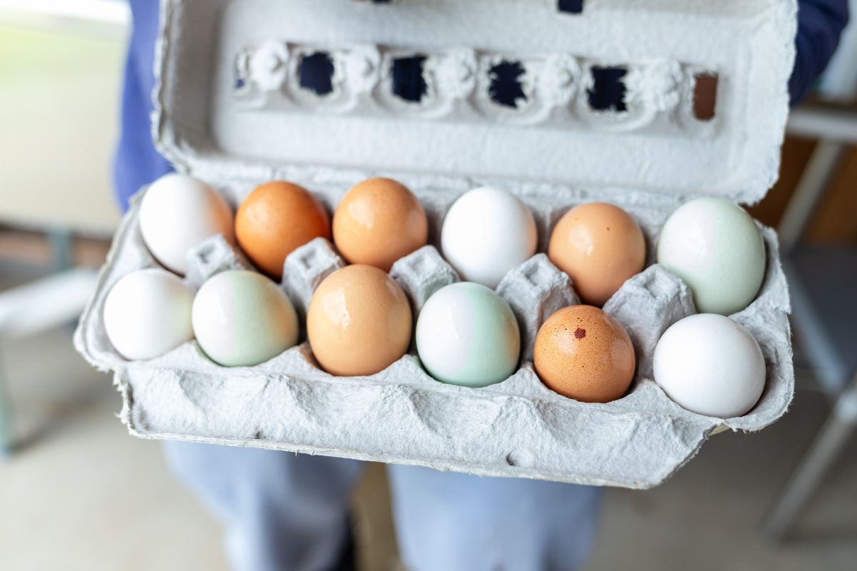 Every carton from Granja Las Aguilas has a mix of white and brown eggs, and you may even see a blue or green egg from our heritage breed hens! Egg shell color is genetically determined by breed, and has no effect on what is inside the egg. They are all equally nutritious and delicious.