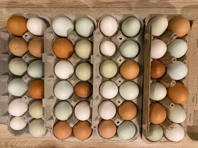 Every carton from Granja Las Aguilas has a mix of white and brown eggs, and you may even see a blue or green egg from our heritage breed hens! Egg shell color is genetically determined by breed, and has no effect on what is inside the egg. They are all equally nutritious and delicious.