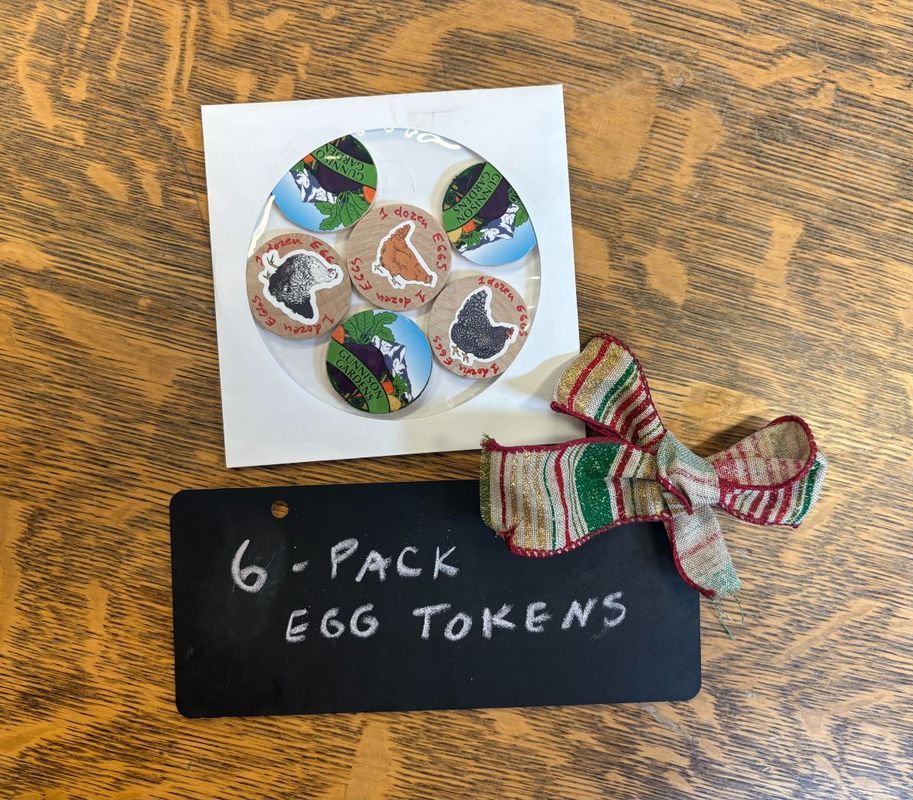 Purchase a 12-pack or 6-pack of egg tokens for the perfect holiday gift! Gift the entire pack or individual tokens to the special people in your life. Each token can be traded in for (1) dozen eggs at farmers markets or the self-serve egg pick-up at Sanctuary Somatics. Perfect for sharing with family, friends, neighbors, and anyone who loves farm-fresh, local eggs! 12-pack comes in an egg carton 6-pack comes in a small bag/envelope