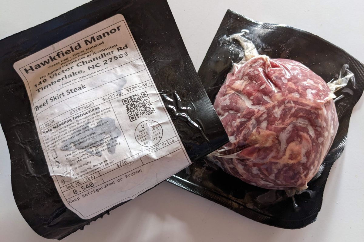 The skirt steak is a long, flat cut from the plate of the beef. It is more flavorful than tender, so it needs to be marinated to encourage tenderness. Great for fajitas!