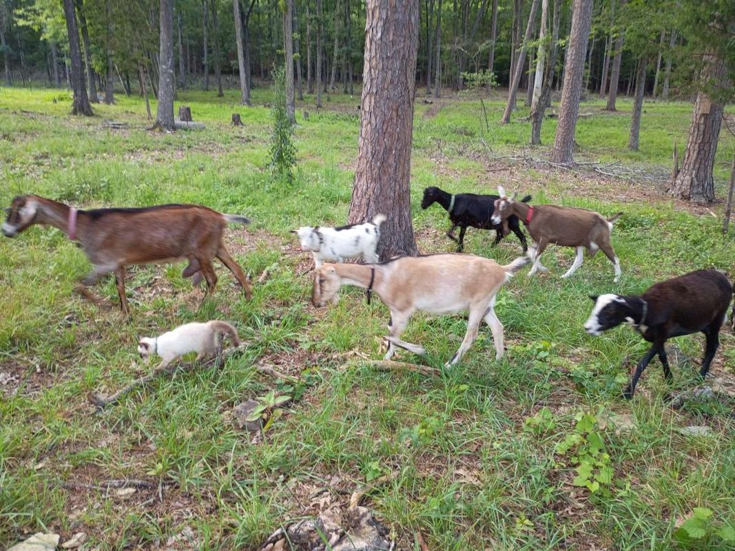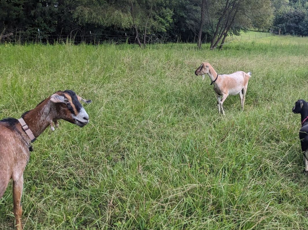 We currently have our goats on traditional and silvo pastures for spring/summer/fall where their primary diet is grass, trees, shrubs, etc.