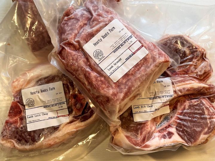 A whole, half, or quarter pasture-raised lamb from our farm. A whole lamb includes about 30–35 lb. of frozen meat, including various lamb chops, a leg roast, meat for kebabs, ground lamb, and shanks. Based on the genetics of the flock and our grazing practices, we expect exquisite flavor! A whole lamb share should take up about a milk crate's worth of space in a freezer. We will have our butcher cut the meat to our standard preferences. If you would prefer to specify your own cut sheet, we can accommodate that if you provide us details by October 9th. Email us at csa@heartyroots.com to request a custom cut sheet. Learn more at https://www.heartyroots.com/lamb.