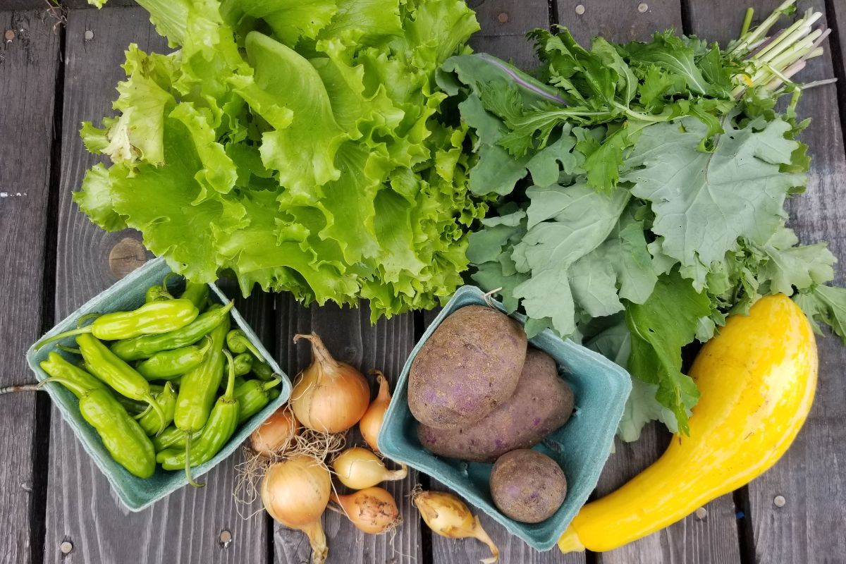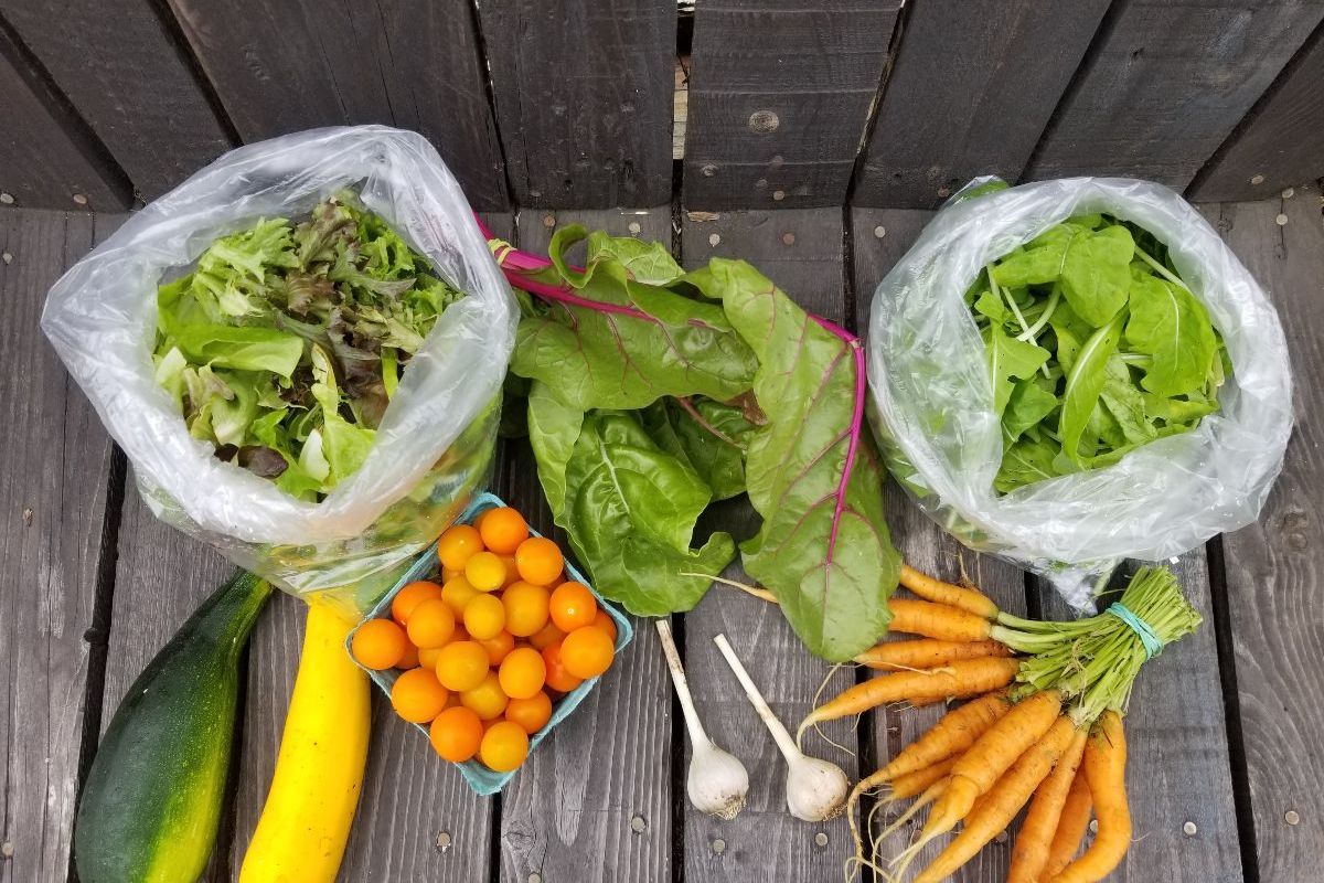 18 weekly pick-ups of vegetables. Each week members receive a seasonal mix of 6-8 vegetables and each share is created with an eye towards usable quantities of a variety of vegetables for members to be able to create delicious meals. Shares comfortably feed two adults that cook regularly. Vegetables are grown on our own farm in Canaan, NY and also include vegetables from nearby farms.