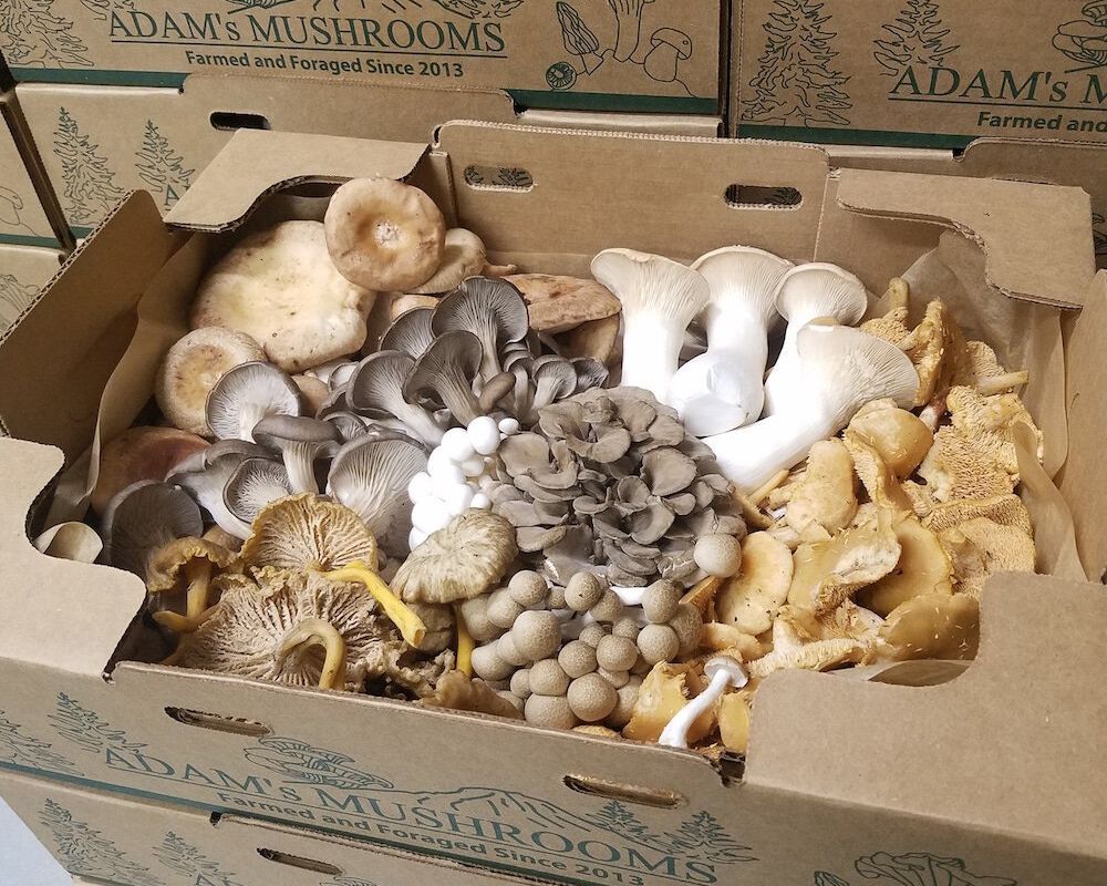 Adam's Mushroom Shares may include up to 3 different varieties, weighing (approx.) 1 qt or 1 lb of fresh cultivated or wild foraged mushrooms delivered weekly.