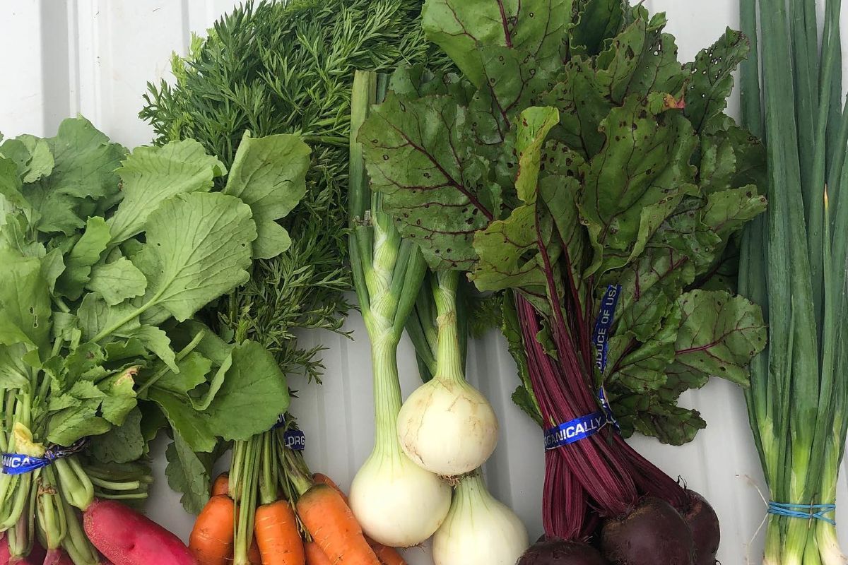 -Onions, shallots, green onions or leeks arrive weekly when in season.