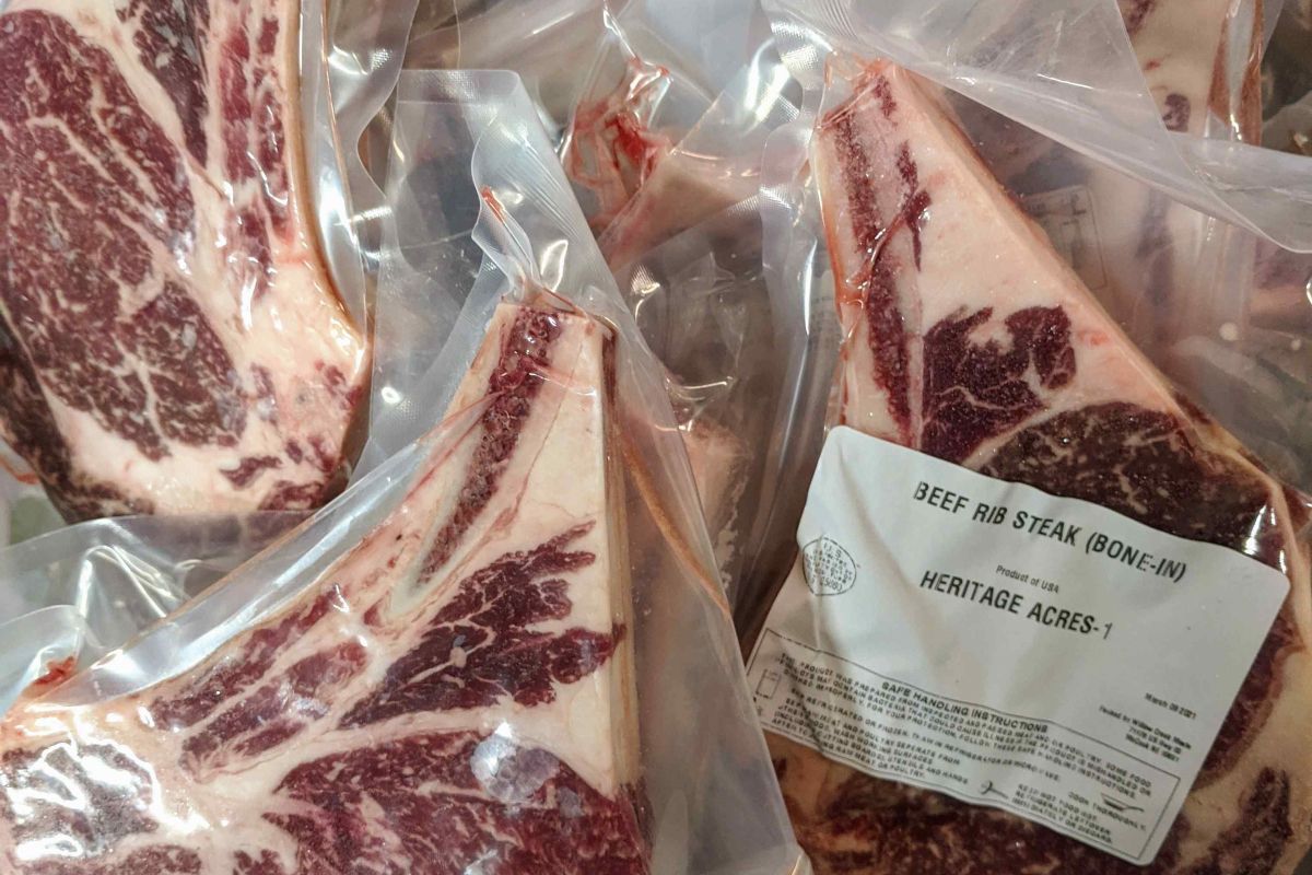 At Heritage Acres, we ranch with a regenerative philosophy you can be proud to support, and, since our beef is artisan, extra care & attention have been given to the finishing process but this also means quantities are limited. Our 14-day dry-aged beef is treated well, finished long, & sizzles great on the grill.