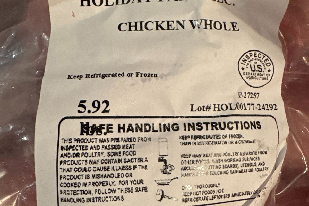 Farm raised whole Chicken USDA processed avg. 5+lbs