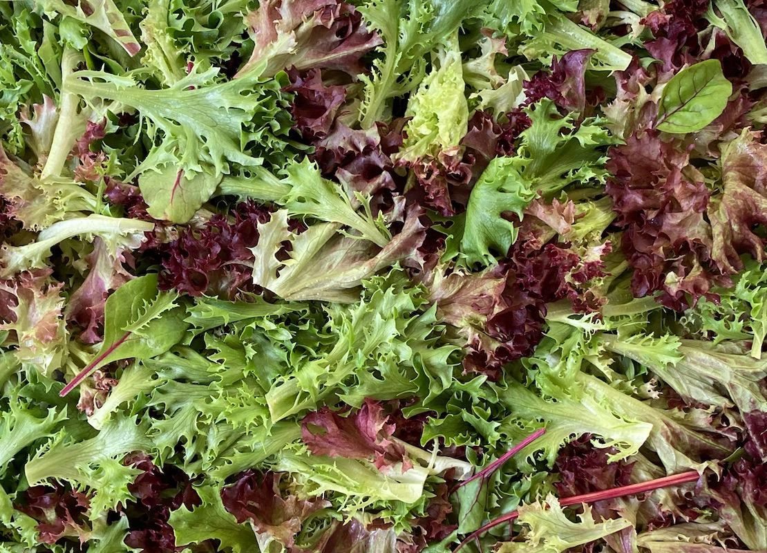 Mix of red & green Salanova lettuce and a splash of Fire Fresh baby chard and Ruby Red Orach in ~3-Pound Bulk Bag Rinsed Once - Wash Before Eating