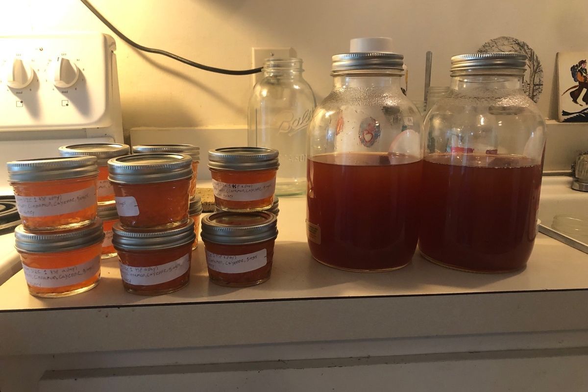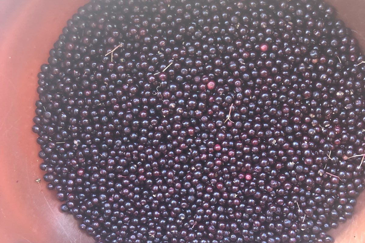Locally Harvested Elderberries are cooked down with Ginger, Cinnamon, Cayenne, and local honey. Strained and then Jared, Always made in small Batches.