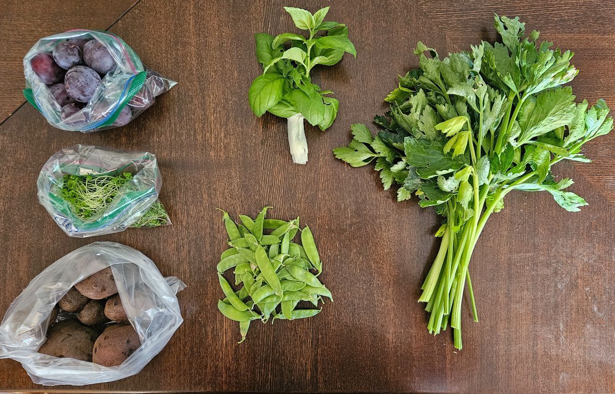 For example, you may want to select a head of lettuce, a bag of spinach, a bag of tomatoes, a bunch of basil, a bunch of carrots, a bunch of beets, leeks, microgreens, some peppers and some garlic. OR, you may want to select a head of lettuce, a bag of spinach, two bunches of carrots, three bags of tomatoes, some peppers and two bunches of beets.