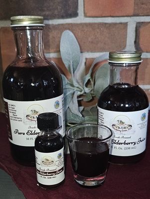 Certified Naturally Grown elderberries fresh pressed into juice and prepared in a commercial kitchen and Ohio Department of Agriculture approved. Lemon juice is the only preservative.