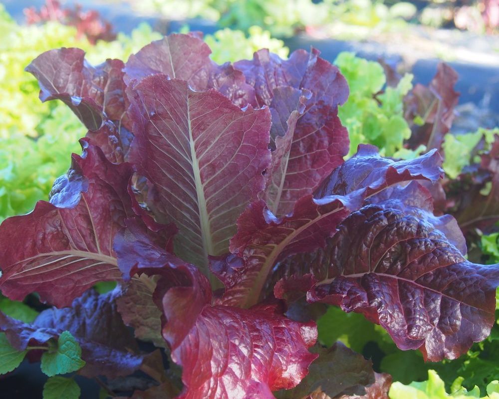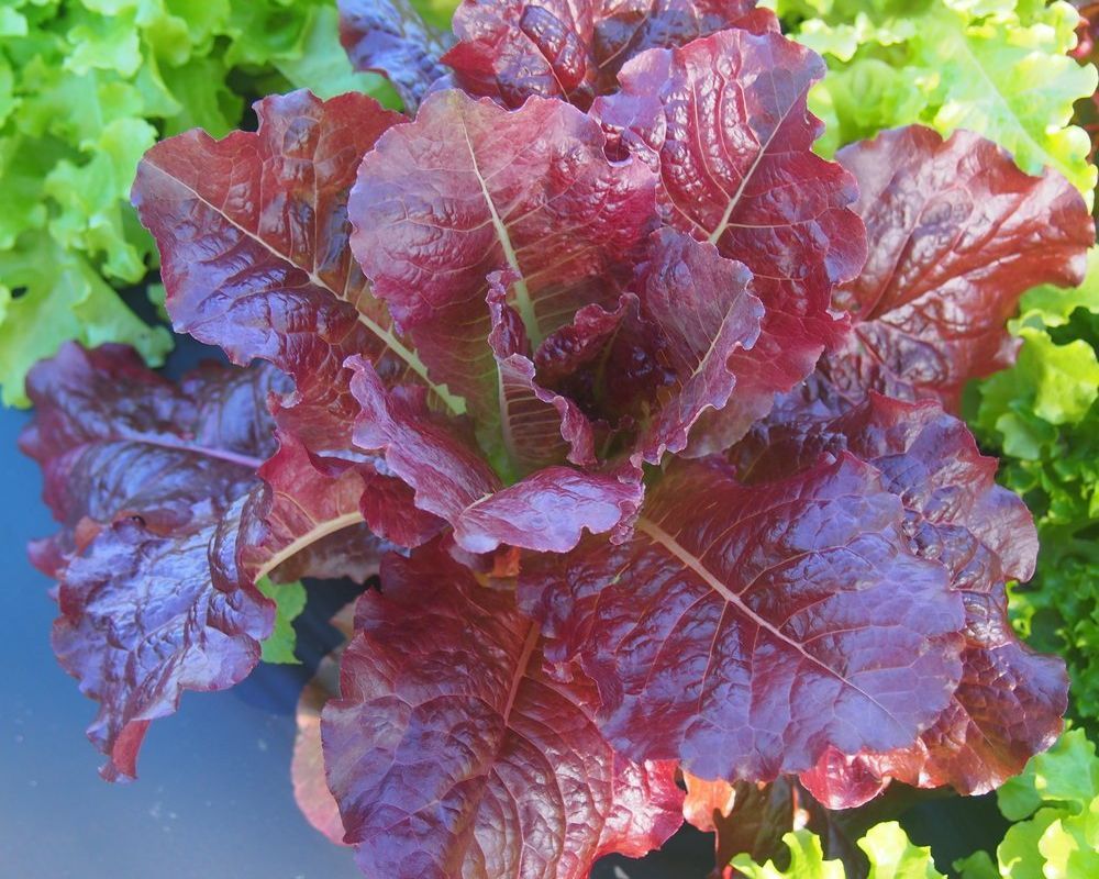The vibrant burgundy stained leaves form a semi-tight rosette, growing upward and outward. Red Oak Leaf lettuce has a buttery texture and a mellow, nutty, earthy, and sweet flavor.