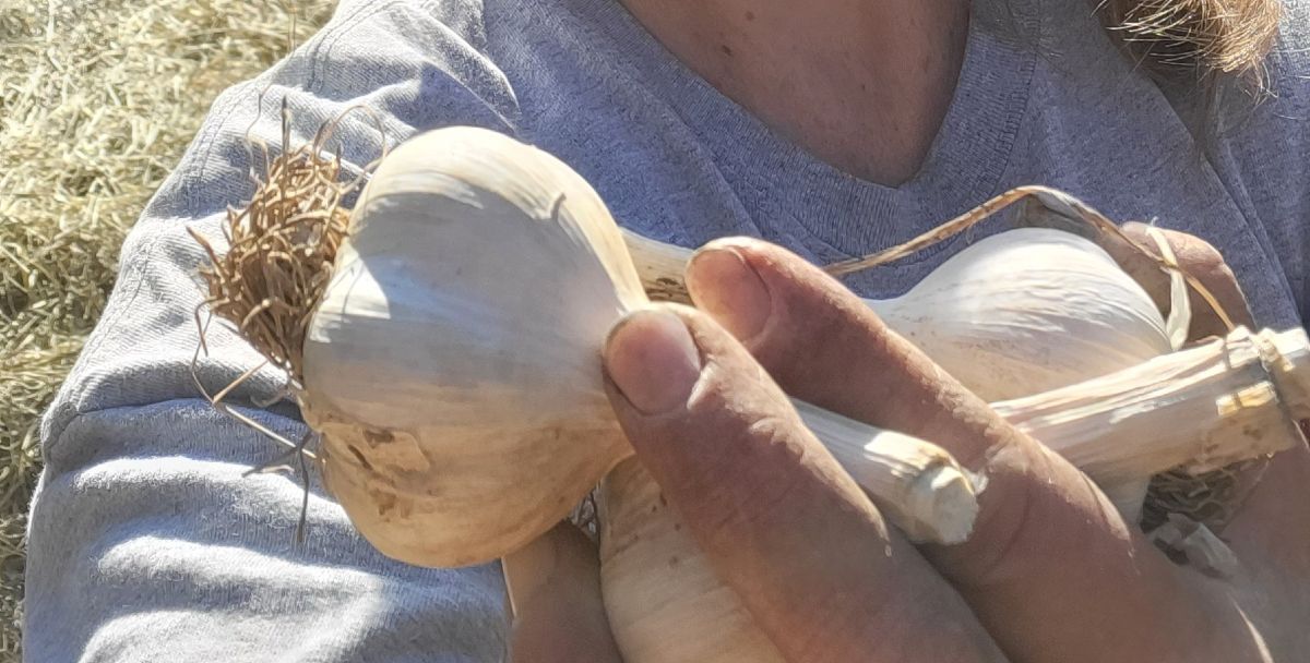 Freshly harvested Garlic bulbs, you can use fresh or hang them and dry them yourself for long time storage