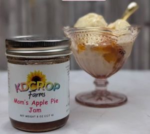 Mom's Apple Pie Jam is made with farm fresh apples, lemon, and a little cinnamon/nutmeg right before jarring. Great in yogurt, toast, and ice cream. Shelf stable from 1 year. Keep refrigerated after opening.