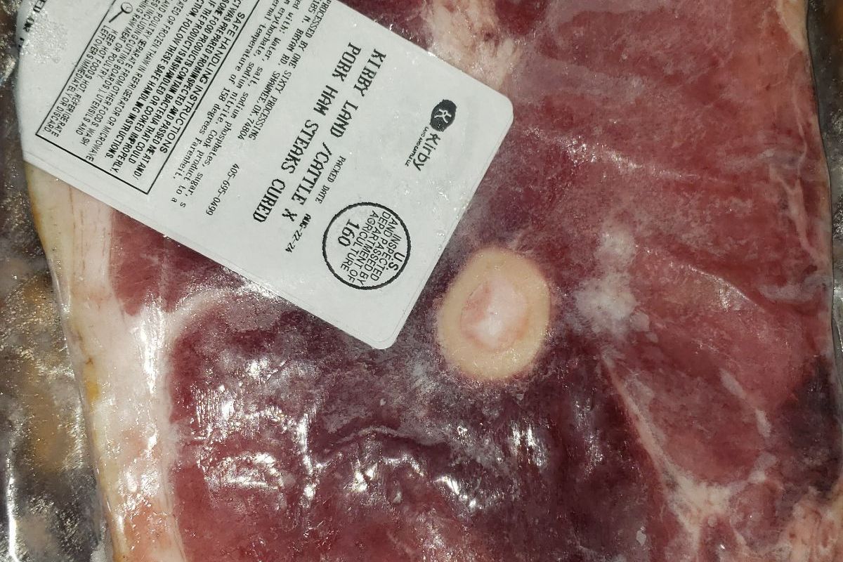 Pork Ham Steak -1-2 lb. Pack - Premium ribs from heritage-breed Mangalitsa pork - Thick, flavorful cut of cured ham. - Exceptionally marbled for a tender, melt-in-your-mouth experience. - Great for Grilling or Pan Searing -Perfect for breakfast, sandwiches, or main dishes.