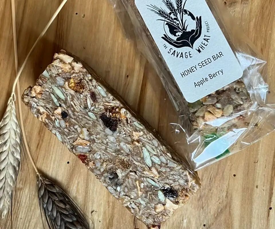 Eight different kinds of bars from Savage Wheat Project, made with honey, nuts, dried fruits and seeds.