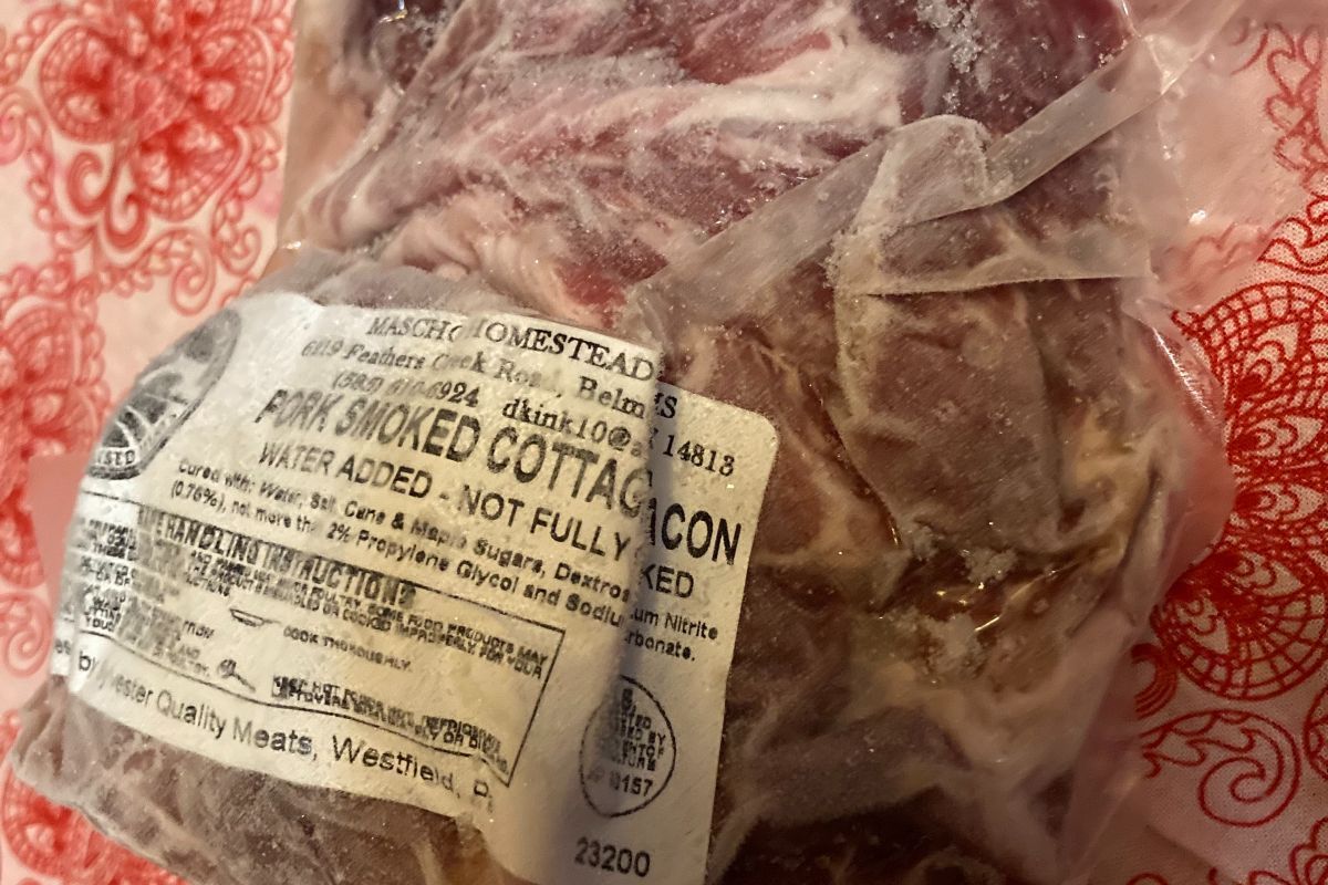 Smoked cottage bacon from Mascho Homestead Farms.