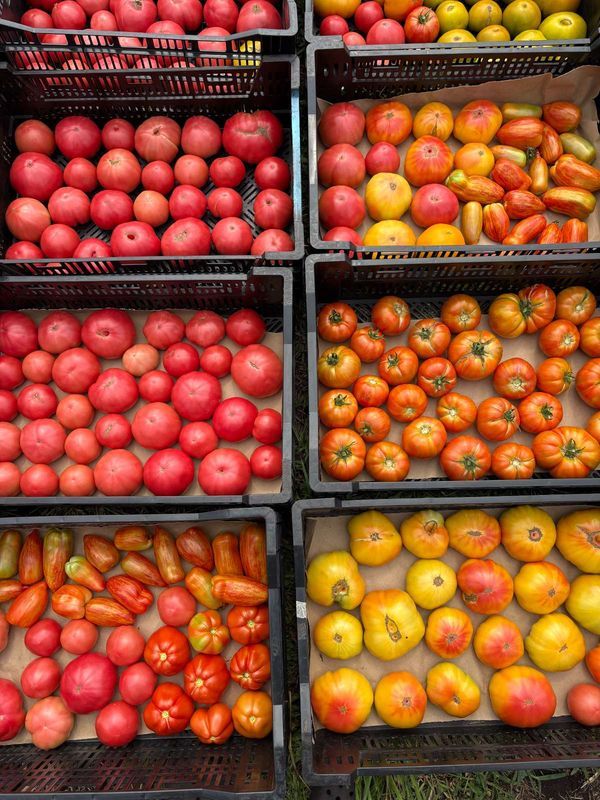 We focus on growing high quality flavor-forward varieties. Each week there will be some classic options (ex: kale, potatoes, lettuce) along with more unique varieties (ex: fairytale eggplant, shiso, garleek). There will be lots of herbs, 10+ varieties of tomatoes to try, and an abundance of greens. Some weeks we will supplement our shares with produce grown by our neighboring farmers at the Chester Agriculture Center.