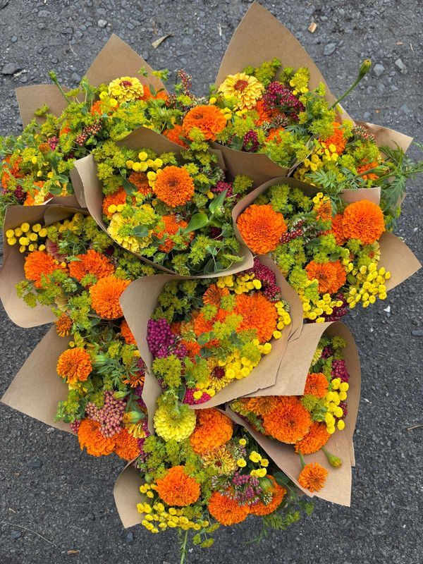 All flowers are grown using organic growing practices, a real rarity in cut flowers. Each weekly bouquet is hand harvested and arranged. These bright and beautiful bouquets will bring light and life into your home or office and can also make a lovely gift.