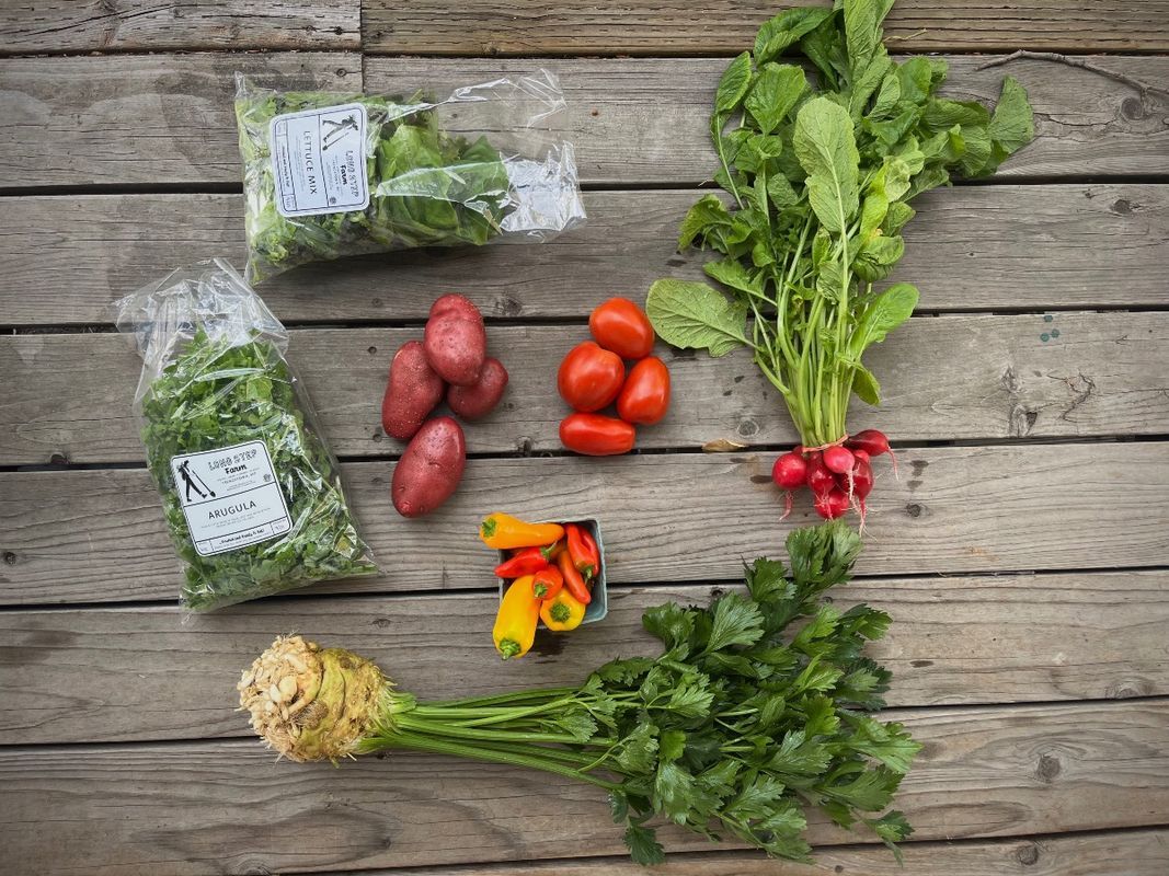 Looking to support your local farmers with their early season costs? Interested in an abundance of fresh, seasonal organic veggies at your table all summer long? Our Summer CSA Share might just be what you're looking for! Our CSA will run for twenty weeks, from June 11th to October 22nd. Each week, you’ll receive a hand-packed box of our freshest veggies, complete with some recipe ideas and storage tips. We’re offering two share sizes this year, “Family” and “Personal”. This is our “Family” share, which will generally have between 6 and 8 items per weekly box. It’ll offer more variety of veggies and likely bigger quantities of each. It’s perfect for feeding a larger crew, splitting between two smaller households, or for the truly-veggie enthused. A large sized shared will deliver an average of $30 worth of produce/ week, depending on the time of year. If you're looking for something smaller, check out our "Personal" share. We’ll have three pick up locations for CSA this year. One will be Thursdays from 4:30-6:30pm at Black Coffee Roasting Co in Missoula. Second option is 8am-1pm on Saturdays at the Clark Fork River Market in Missoula. Third option is 8am-5pm Fridays at the Farm in Frenchtown (16660 Thunderbolt Ln). When you sign up, you’ll choose your regular pickup spot, but we know plans can change, so we'll make it easy to switch locations week to week. If you ever need to miss a week, no problem! Just let us know ahead of time, and we’ll issue you store credit. There’s no limit to how many weeks you can miss, and as the season gets rolling, we’ll open up our online store so you can always use the credit to supplement extras like canning tomatoes, garlic braids, flower bouquets, or fall stock-up items. You can even roll over unused credit to the following season. Everything we grow is certified organic by the Montana Department of Agriculture, so you can feel great about what you’re eating. Thanks for your interest in our CSA and supporting your local food system! We look forward to seeing you this summer. For more information and FAQs about our CSA, please check out our website, www.longstepfarm.com/csa