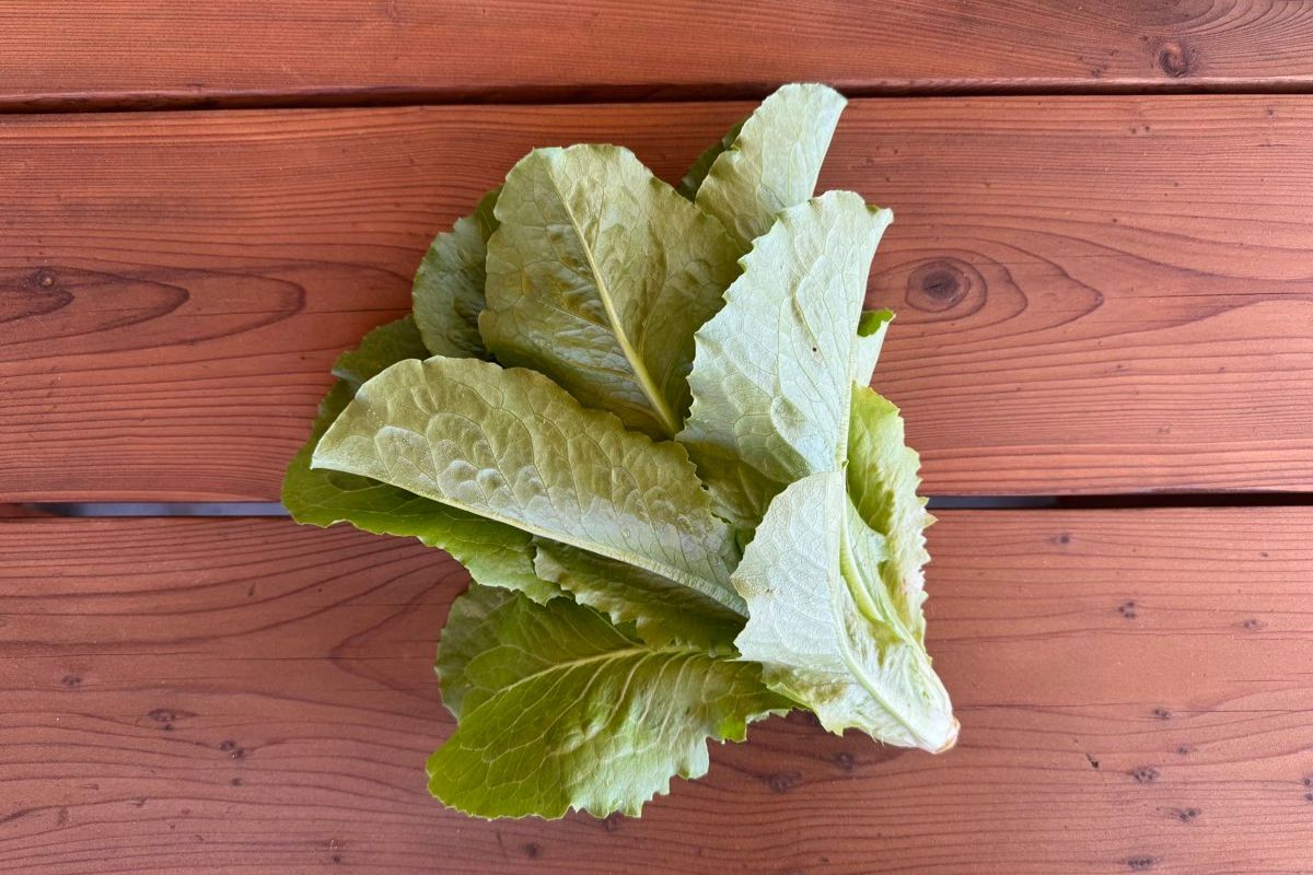 Full size head of romaine lettuce, rinsed. Extra crunchy stems and big broad leaves, romaine says caesar salad all day. Of course, it's great in any salad or topping a burger. You can't go wrong!