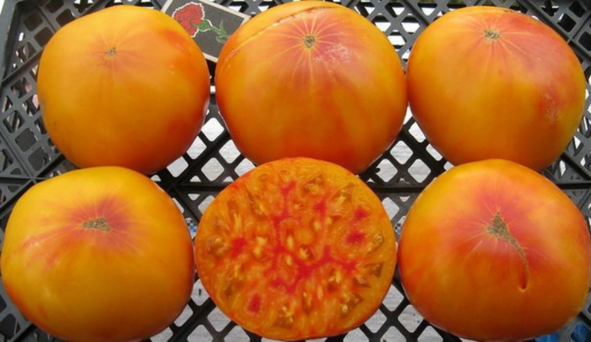 A very sweet, orange and yellow heirloom slicer. Great for tomato sandwiches and fresh salads. Low-acid.