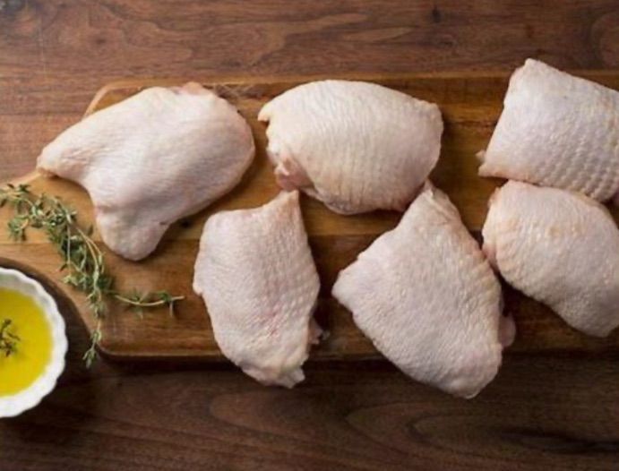 Bone-in, skin-on chicken thighs. Juicy, flavorful, and sturdy for grilling or baking, with rich taste from natural raising.