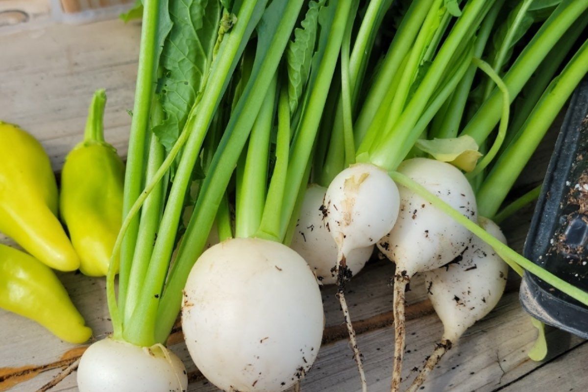 Hakurei turnips are golf ball sized, white and very sweet. Fresh, they contribute a crisp and zesty bite to your favorite salad, and are equally delicious sliced or quartered & pan sautéed in butter or broiled