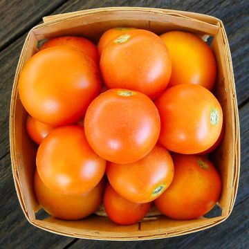 (70 days). 4 oz. Beautiful French heirloom yielding early crops of apricot-colored fruits borne on elongated trusses. Excellent fruity flavor with a perfect blend of sweet and tart. Great for drying or roasting, retains deep orange color.