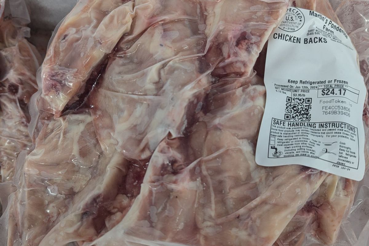 The meat & bones left over after the wings, breast & legs are removed. Great for bone broth, soups and Chicken & Dumplings!