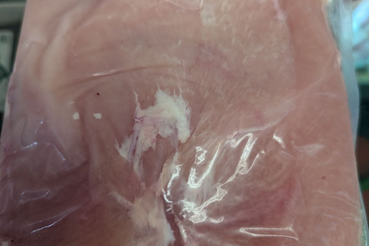 A cut of chicken meat taken from the breast of the bird, with both the skin and bones removed, leaving only the lean, white muscle which is considered the leanest part of the chicken