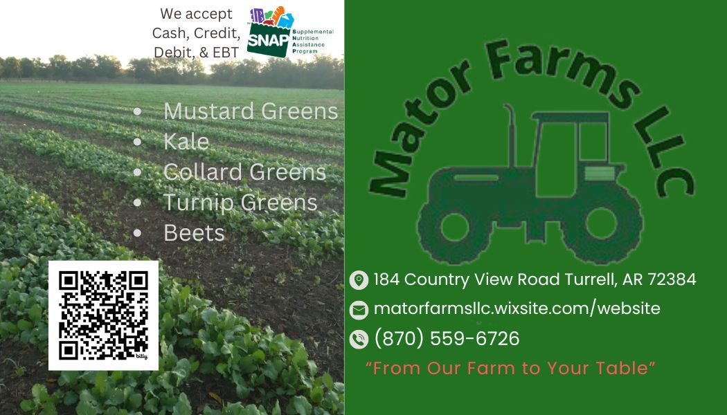 We specialize in leafy greens: collards, mustards, turnip greens and kale. We also grow okra, peas, beets, and melons and have locally grown and sourced pecans.