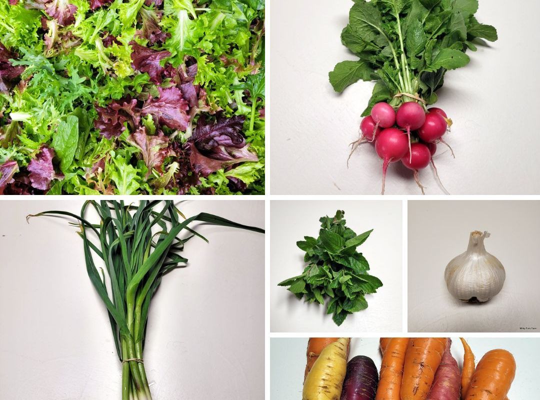 Our Spring CSA is our shortest, smallest, and least expensive CSA. Each week shares will consist of about 2/3 to 3/4 pounds of salad mix along with about 3-5 other seasonal produce items such as greens, radishes, garlic scapes, and kale rapini.