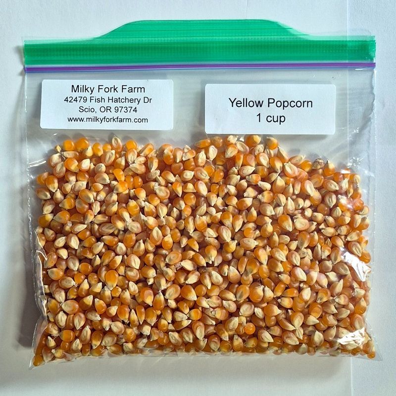 This beautiful yellow popcorn is more like the standard popcorn you may be used to. It pops up pretty big and has a great buttery color with a hearty texture and great flavor. 1/3 cup of kernels makes 1 batch in our popper so your 1 cup bag should produce about 3 batches.