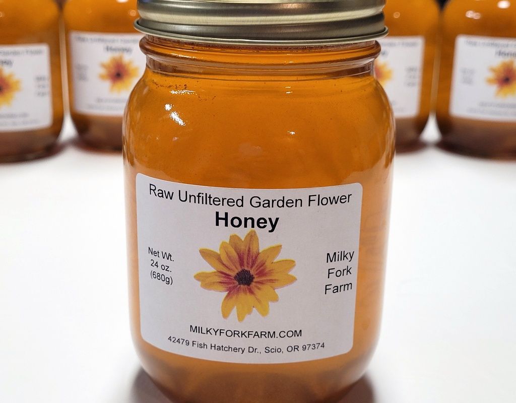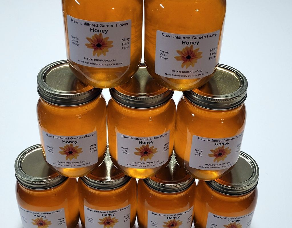 Honey. Straight from our hives to you. Raw and unfiltered. We switched over to glass jars this year. Easier to get the honey out, clean and reuse, or return to us for reuse. Don't forget to grab a honey dipper too!