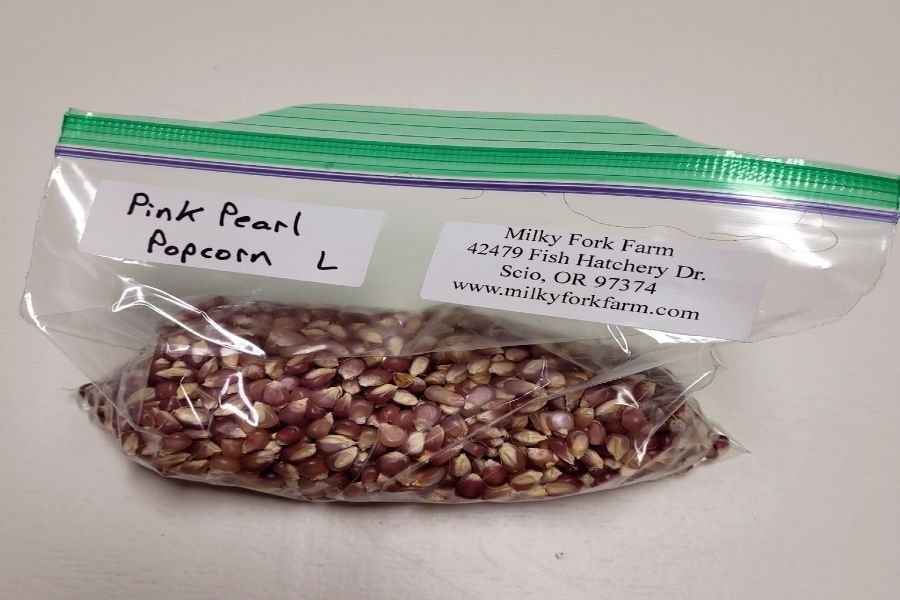 This beautiful pink popcorn is a variety named "Pink Pearl" that we grew here last summer. Although it doesn't pop as large as commercial varieties, almost every kernel popped in our tests to produce beautiful white popcorn with a hearty texture and great flavor. 1/3 cup of kernels makes 1 batch in our popper so your 1 cup bag should produce about 3 batches.