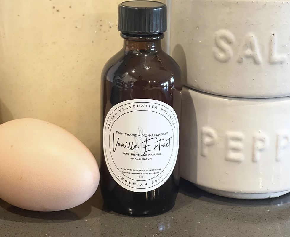 Experience the pure essence of vanilla with our 100% natural Non-Alcoholic Vanilla Extract, complete with the pulp, to provide unparalleled flavor and aroma. Crafted with care using vegetable glycerin and organic Fair-Trade, imported vanilla beans, this extract offers a healthy alternative without compromising on taste. Housed in 2oz amber bottles, we ensure the quality and integrity of the product are preserved for your wellness needs. At Arukah Restorative, we align with holistic solutions for home and health, making this vanilla extract a perfect choice for your culinary and wellness endeavors. Elevate your recipes and well-being with our sustainably sourced, all-natural vanilla extract.