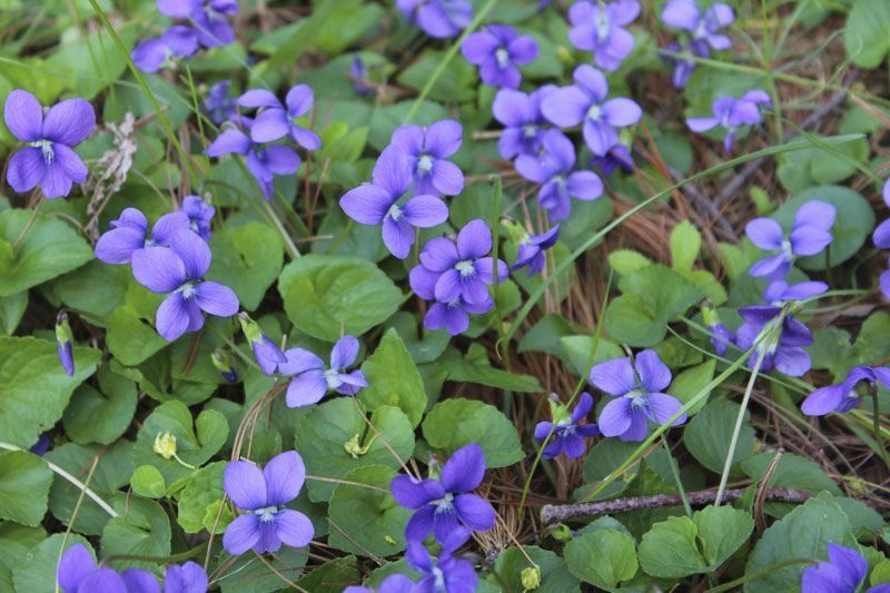 Pint size pot. Native perennial. Purple Violets (also called Common Blue Violet) are a lovely low growing ground cover that is one of the first signs of spring. They provide an early nectar source for bees and other pollinators. It is also one of the host plants for multiple types of fritillary butterflies. The flowers and young leaves of the common violet are edible - they taste great! We eat them every spring. They thrive in shade and partial shade, but we also have them in full sun as well.